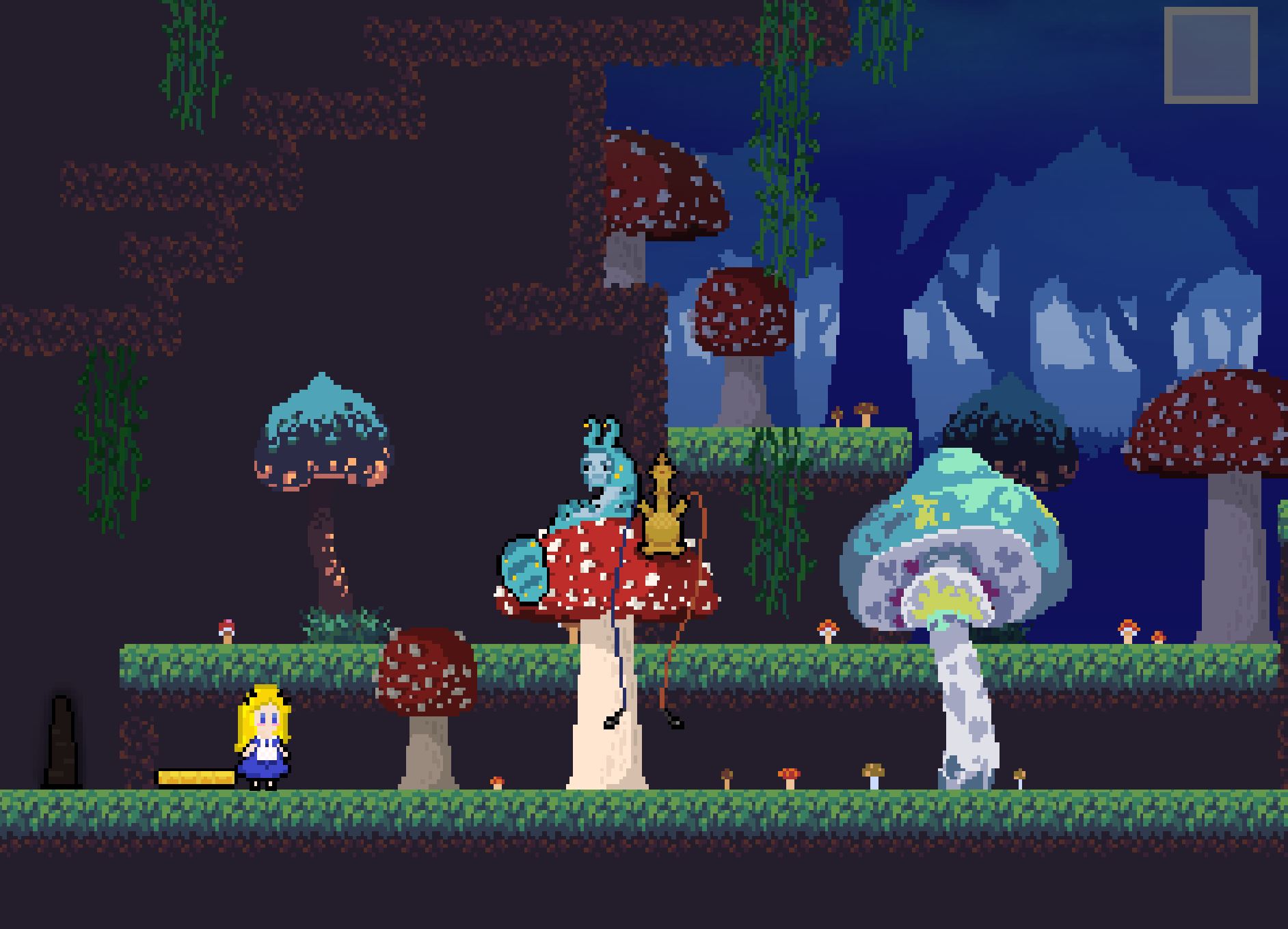 I took advantage of the iconic snacks that Alice eats to change size since they had the most potential to be core mechanics, and simplified them into a big red potion and a small blue potion.